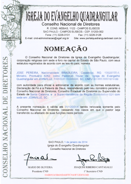 Nomeação São José dos Campos/SP