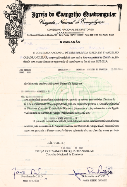 Os registros oficiais das 12 obras pastorais do Pastor José Pereira, documentando sua incansável dedicação e o impacto de seu ministério em diversas cidades ao longo de 37 anos.